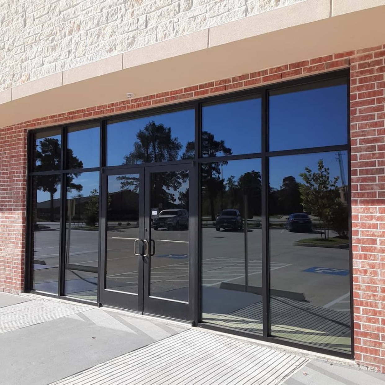 Aluminum is lightweight, durable, and corrosion-resistant, making it an ideal choice for storefront doors and windows. Available in various finishes such as chrome, matte black, and brushed nickel, aluminum frames offer a modern, sleek look while maintaining strength and reliability.